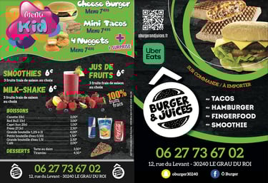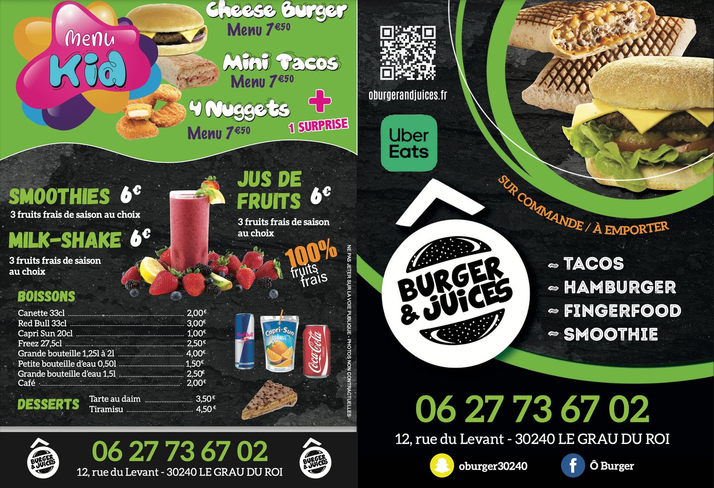 Situé au Grau du roi dans le Gard, Ô Burger & Juices s'adapte à toutes vos envies.